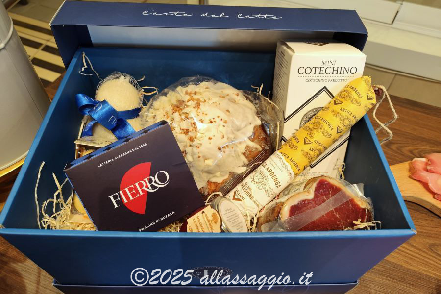 L’ultima strenna per le feste firmata Fierro è rappresentata dalle confezioni regalo, che possono includere esclusivamente prodotti Fierro oppure un assortimento di prodotti enogastronomici selezionati dall’azienda.